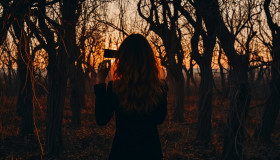 Girl taking pictures of trees, adventure travel stock images, adventure travel ai prompts, travel stock images ai