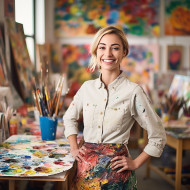 art teacher female friendly smiling work blurred background classroom lesson education instructor mentor profession career occupation job studio creativity inspiration creativity passion learning development progress growth achievement success potential expression imaginationImagine Buddy