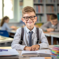 student boy elementary school work friendly smiling blurred background education learning classroom teacher classmate desk book pencil paper backpack happy smart intelligent bright curious eager interested focused motivated successful determined hardworking diligent studious dedicated inspiredImagine Buddy