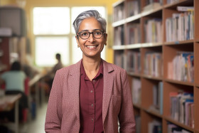 Indian woman professor smiling at work