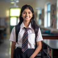 student indian female high school smiling friendly work blurred background education learning studying studying hard books pens notebookImagine Buddy