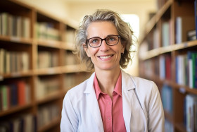 professor woman smiling friendly working blurred background teaching education learning academic knowledge intelligent expert mentor leader role model inspiration motivation success empowerment career female empowerment professional workplace business office universityImagine Buddy
