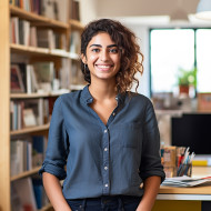 friendly smiling female international student work blurred background school education learning technology internet online communication collaboration teamwork diversity multiculturaImagine Buddy