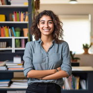 friendly smiling female international student work blurred background school education learning technology internet online communication collaboration teamwork diversity multiculturaImagine Buddy