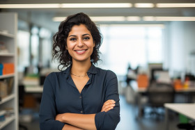 international female student work blurred friendly smile cheerful happy positive focused determined ambitious motivated successful education learning business career future opportunity growth development diversity inclusion global cultureImagine Buddy
