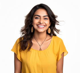 indian female international student smiling friendly white background isolated education abroad study learning young adult woman person people portrait headshot happy cheerful positive energetic motivated successful determined ambitious confident bright future career goalsImagine Buddy