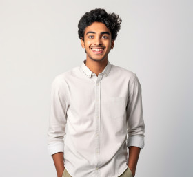 indian male international student smiling friendly isolated white background education foreign exchange abroad study school college university student life campus learning diversity culture international global young adult people person portrait headshot happy cheerful positive friendly approachableImagine Buddy