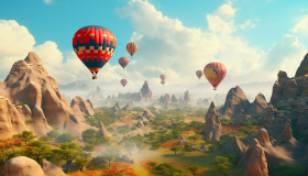 Hot air balloons soaring over the mountains, adventure travel stock images, adventure travel ai prompts, travel stock images ai