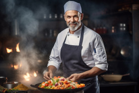 chef cook kitchen restaurant restaurant kitchen food cooking preparing food gourmet delicious tasty yummy apron uniform hat knife cutting board stove oven pot pan spoon fork spatula dish plateImagine Buddy