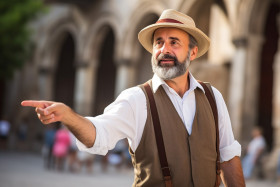 tour guide confident work blurred background tourism travel male person leader professional group people destination sightseeing vacation holiday adventure explore discover learn experience knowledge share passion enthusiasm guide leader escort host storyteller entertainer educatorImagine Buddy