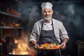 Confident chef cooking at work
