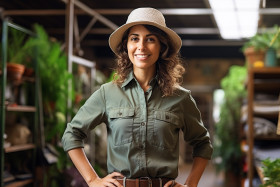 Female tour guide working confidently in front of a blurred background