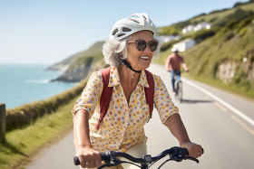 woman bike coastal path leisure exercise healthy happy serene peaceful beautiful scenic nature outdoors ocean sea waves beach shore horizon sunset sunrise summer vacation holiday travel adventureImagine Buddy