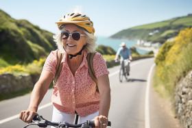 woman bike coastal path leisure exercise healthy happy serene peaceful beautiful scenic nature outdoors ocean sea waves beach shore horizon sunset sunrise summer vacation holiday travel adventureImagine Buddy