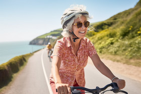 woman bike coastal path leisure exercise healthy happy serene peaceful beautiful scenic nature outdoors ocean sea waves beach shore horizon sunset sunrise summer vacation holiday travel adventureImagine Buddy