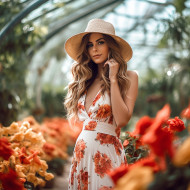 fashion lady garden bloom flower nature beauty spring summer outdoors style elegant dress hat sunglasses purse shoes path bench trees flowers roses lilies tulips daffodils butterflies beesImagine Buddy