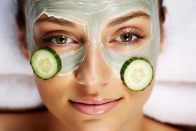 spa relaxation wellness beauty skincare facial cucumber mask lady woman graceful elegant serene peaceful calm tranquil pampering self-care luxury indulgenceImagine Buddy
