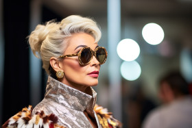 sophisticated lady fashion show high end runway model designer dress gown couture luxury elegant stylish glamorous chic beauty pose walk catwalk audience front row celebrityImagine Buddy