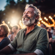 concert music amphitheater open air suave man enjoying crowd stage lights performance entertainment summer night fun vibes energy rhythm melody harmony music lover fan fan favorite artist performer band group solo singerImagine Buddy