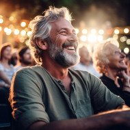 concert music amphitheater open air suave man enjoying crowd stage lights performance entertainment summer night fun vibes energy rhythm melody harmony music lover fan fan favorite artist performer band group solo singerImagine Buddy