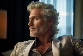 debonair man relaxing luxurious hotel room leisure travel vacation luxury lifestyle comfort wealth style relaxation opulence elegance sophistication affluence success status luxury lifestyle indulgence pampering comfort relaxation opulence elegance sophistication affluence success statusImagine Buddy