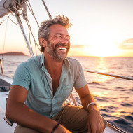 yacht man sunset cruise relaxed enjoying vacation luxury relaxation travel adventure outdoors nature scenery lifestyle boat sun evening lifestyle sea sky water enjoyment happiness leisure freedom peace serenity tranquility contentment bliss paradiseImagine Buddy