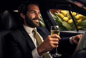 sophisticated man champagne limousine celebration luxury wealth party rich vip businessman entrepreneur toast glass luxury car celebration achievement success wealthy lifestyleImagine Buddy