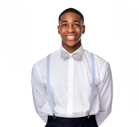waiter service restaurant food drink hospitality friendly smile isolated white male customer menu order table chair plate glass fork knife spoon uniform apron bow-tie neat tidy professional welcoming inviting pleasant happy cheerful friendlyImagine Buddy