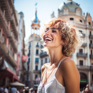 architecture barcelona spain joyful woman admirer tourist touristy travel traveler sightseeing sightseeing tour landmark iconic famous beautiful stunning colorful vibrant unique gaudã sagrada familiaImagine Buddy