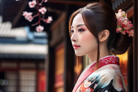 radiant lady cherry blossoms kyoto japan travel spring nature beauty woman asia culture pink white flowers tree park kimono traditional japanese tourist smile happiness peace tranquility serene calm tranquil serene peaceful joyful happy vibrant delightfulImagine Buddy