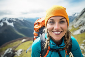 radiant woman hiking swiss alps spring nature mountains outdoors adventure travel exploration freedom happiness joy beauty peace tranquility serenity wilderness scenery landscape viewpoint summit peak meadowImagine Buddy