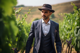 man suit vineyard walking business wine grapes winery luxury wealth success power confidence sophistication class elegance style fashionImagine Buddy