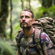 Jungle adventurer on a thrilling trek