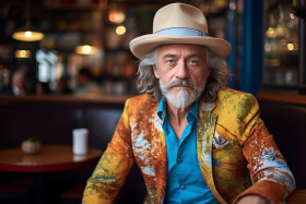 man fashionable outfit european cafe male stylish clothing gentleman coffee drink food interior furniture table chair people lifestyle travel vacation leisure relaxation enjoyment happiness luxury elegance sophisticationImagine Buddy
