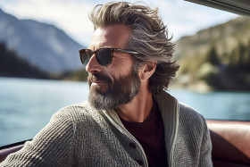 man boat lake serene stylish enjoying leisure relaxation tranquil peaceful scenic beautiful nature outdoors water summer vacation travel adventure freedom happiness tranquility serenity peace solitudeImagine Buddy