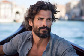 Gondola ride in venice with handsome man