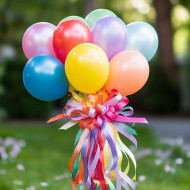 balloons bouquet colorful helium ribbons celebration party birthday anniversary decoration festive happy joy fun cheerful bright vibrant colorful floaty lighthearted airy ethereal dreamy magicaImagine Buddy