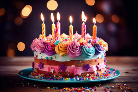 birthday cake candles celebration dessert party sweet food cake frosting decorations sprinkles festive colorful happyImagine Buddy