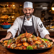 restaurant model seafood dish presentation cuisine gourmet culinary fine-dining upscale professional hospitality service waiter customer meal dinner lunch appetizer entreeImagine Buddy