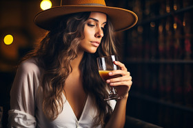 Stylish woman enjoys craft beer at a popular brewery