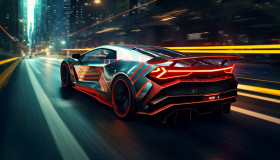A lamborghini huracan is on a dark street in a city, midjourney ai art, ai art, midjourney free prompts