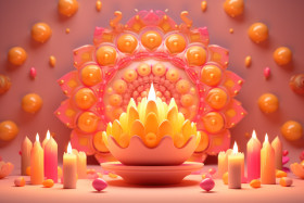Festive diwali diya and lamp glowing amidst colorful lights and candles