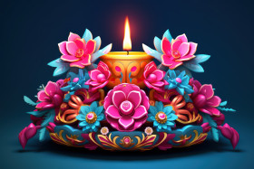 3d model diya lit flowers arrangement light shadow color texture diwali hindu india festival celebration tradition culture religion beauty art design creativity inspiration love peace hope joy happiness calm serenity eleganceImagine Buddy