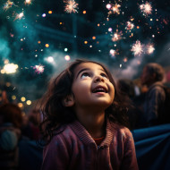 younggirl firework night sky city colorful celebration happy childhood dream imagination wonder sparkle light joy hope freedom magic festive stars pattern design explosion burst glitter bright shining dazzling vibrant enchanting mesmerising captivatingImagine Buddy