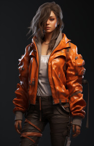 Female in orange jacket and jeans, midjourney ai art, ai art, midjourney free prompts