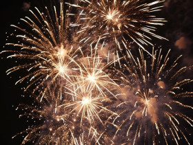 Sparkling fireworks illuminate the night sky with vibrant colors