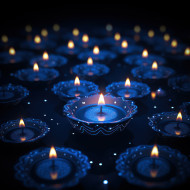 Blue diya design on a dark blue backdrop