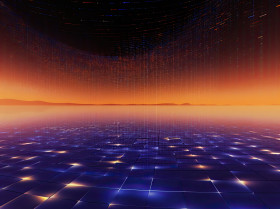 Abstract fractal light reflections on an orange and orange background with blue reflections