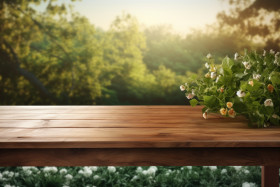 wooden table lush background nature outdoor garden patio greenery foliage plants trees sunlight summer spring vibrant peaceful serene tranquil relaxing calm inviting inspirational creative rustic natural organic eco-friendly sustainable healthy fresh beautiful scenic idyllic picturesque breathtaking stunning mesmerizing enchanting captivating product backgroundImagine Buddy