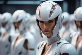 Futuristic dance harmony humans and robots in choreographed fusi